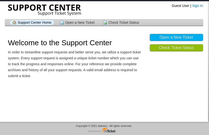 Visiting helpdesk.delivery.htb we see that its running OSTicket.