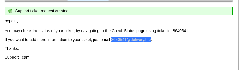 That is an interesting hint. We will keep that in mind. Continuing, we see it pointing us to helpdesk.delivery.htb we will add it to out /etc/hosts and poke it.